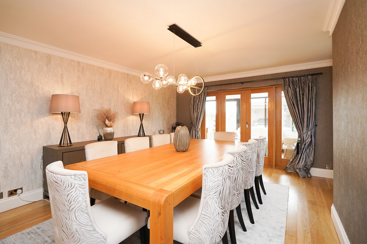 To create an elegant dining room for entertaining guests with touches of luxury. The client's table was to be retained and we also needed a solution for additional storage for wine bottles and refreshments.