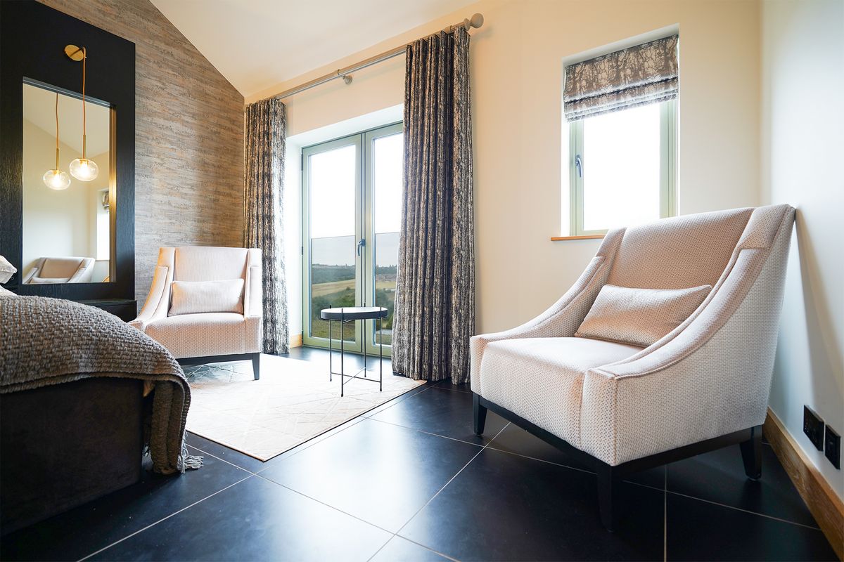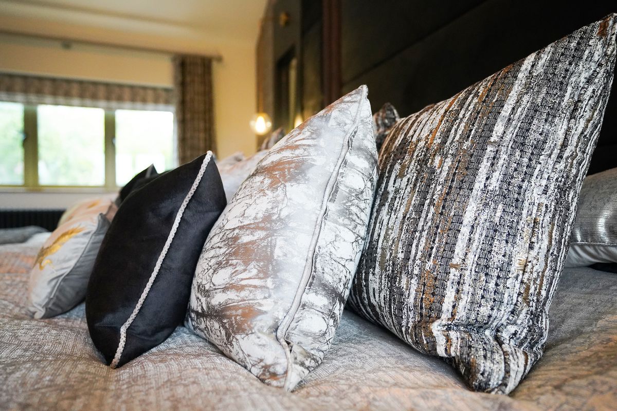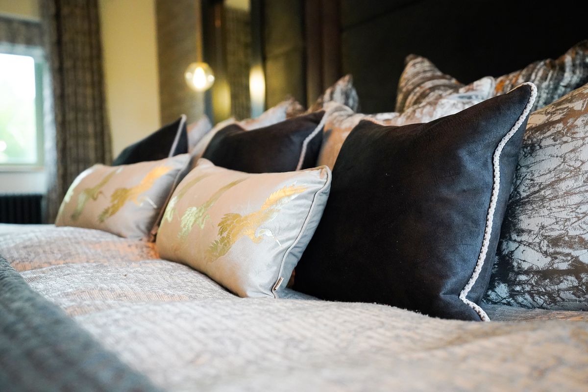 To create a bedroom that felt like a hotel, a big bed was important and they knew they wanted a headboard. They also wanted some seating if possible and a dressing table area along with curtains.