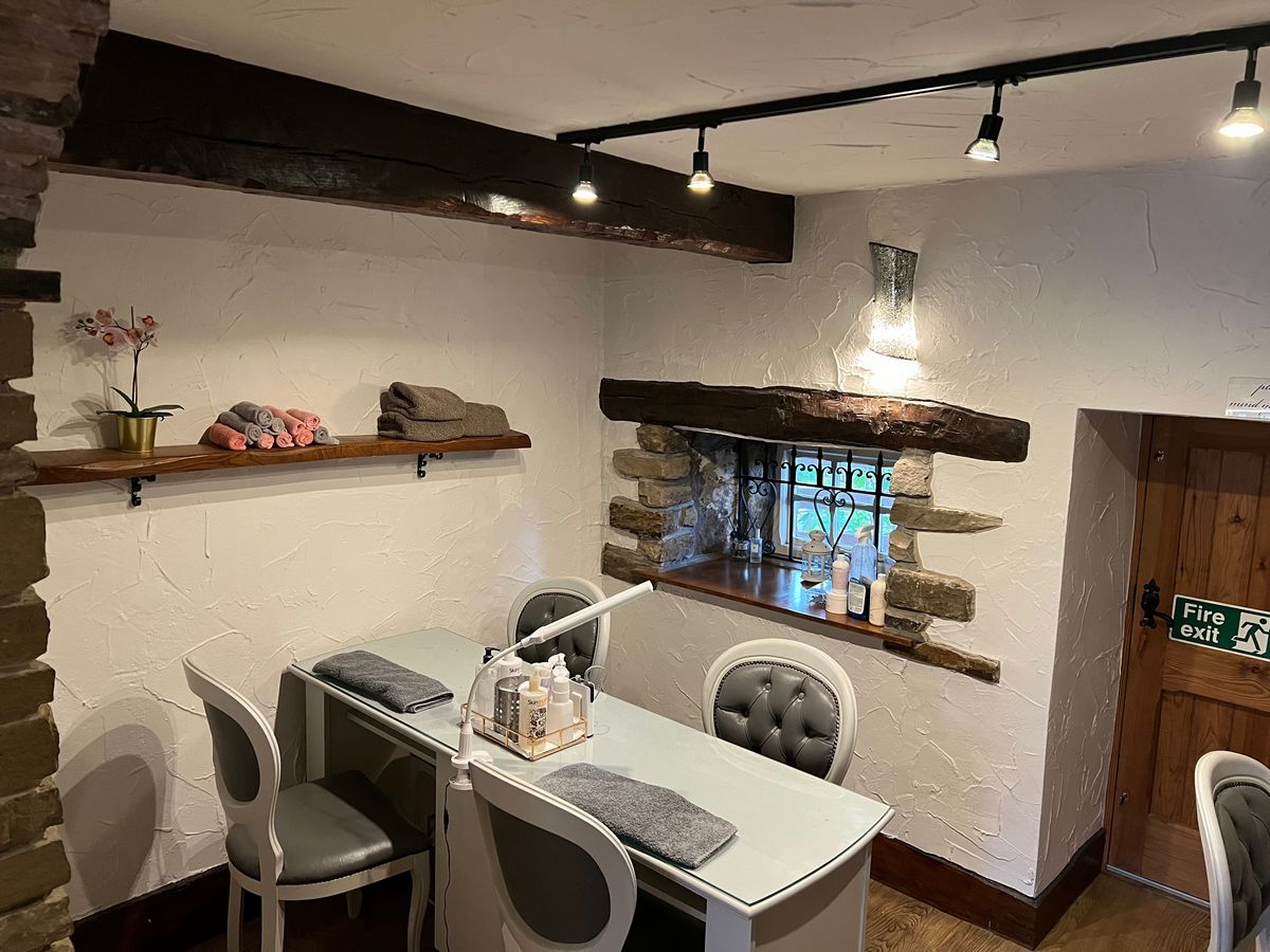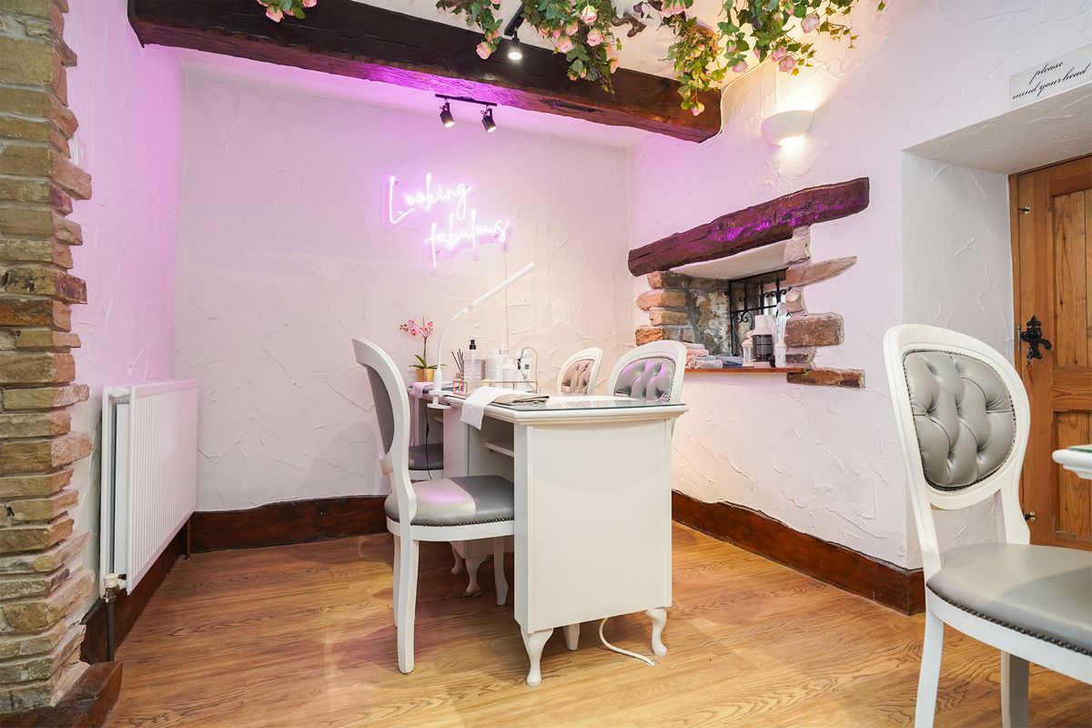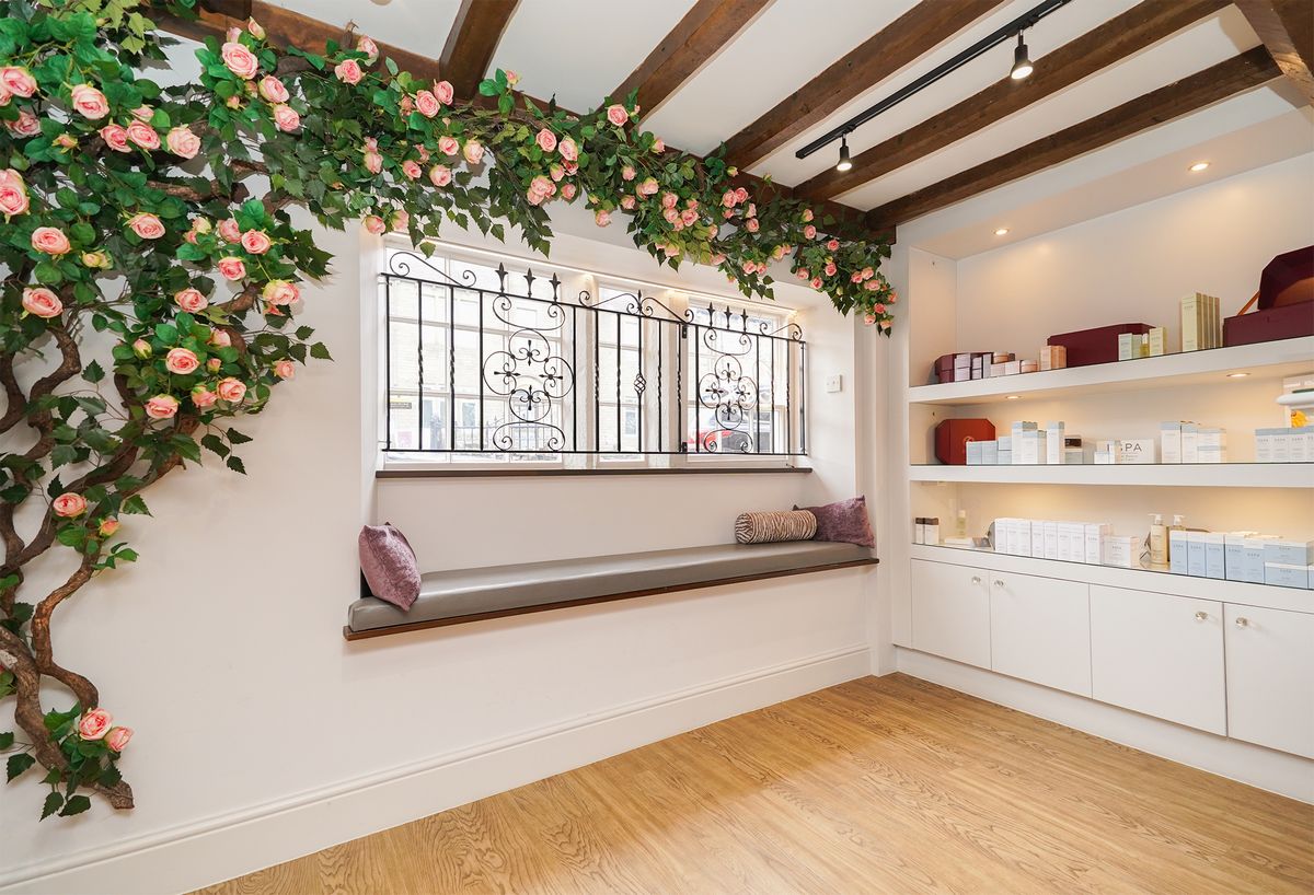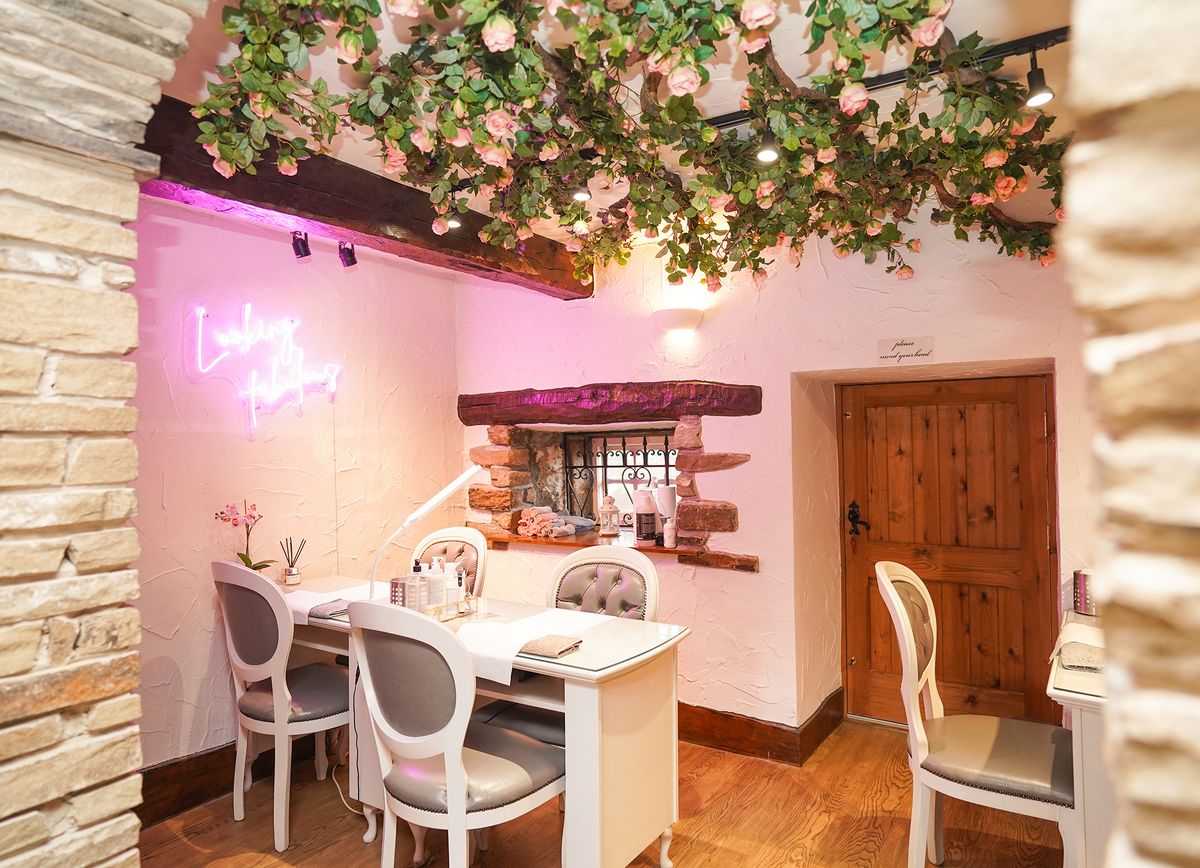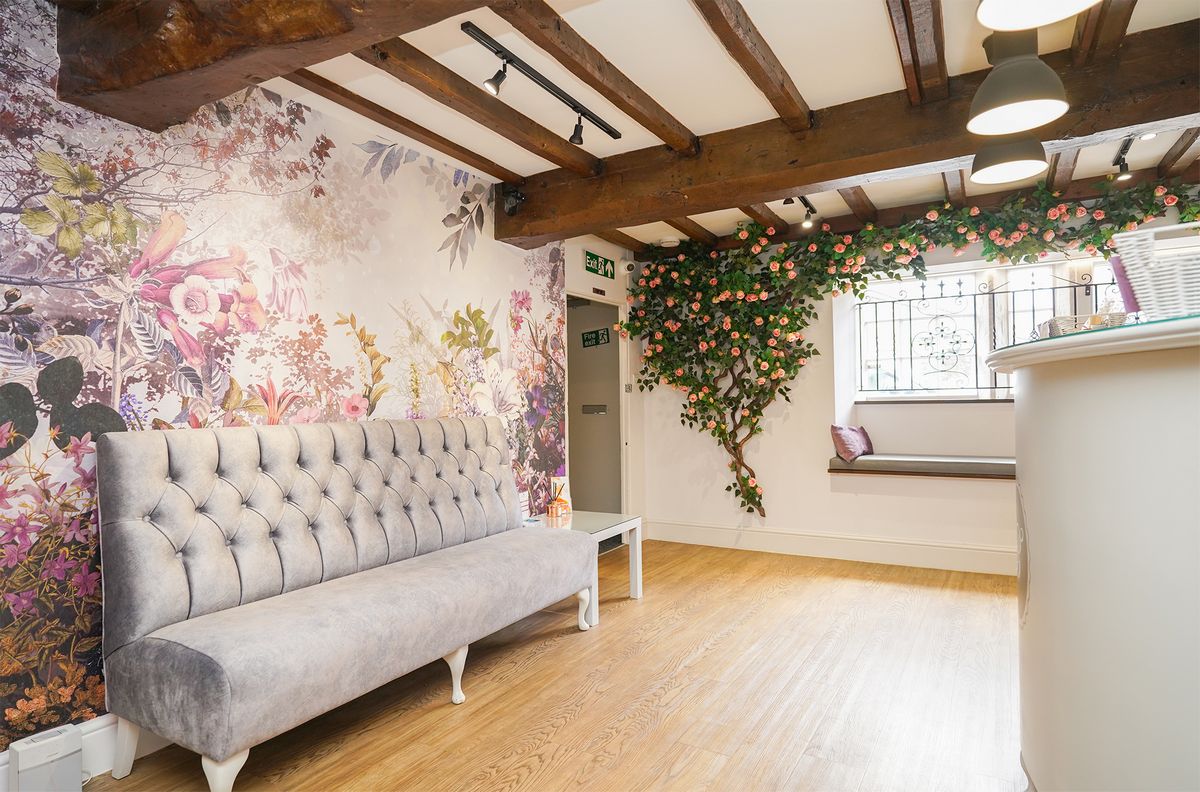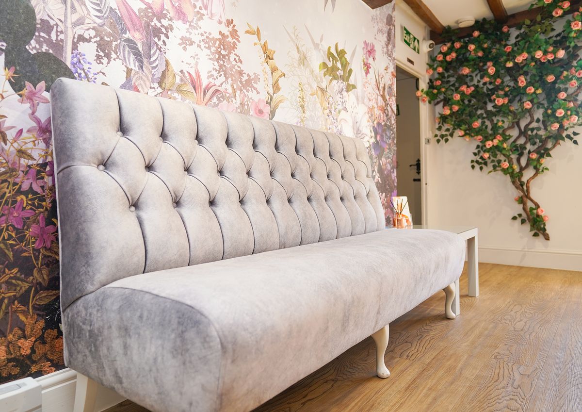 We added vine roses to the walls and had it creeping across the ceilings which created a real wow factor when walking in, we continued this through to the lower section too. We changed some of the lighting to ensure it was brighter for the beauticians within the section ensuring it was practical and functional for them to work. We also added a neon sign in this space plus one in the window saying it was open so then you could see from the outside. Creating a feature wall in the reception and having the bench recovered helped to give those finishing touches need with some extra POS. The project was delivered in a day when they were closed so no impact to the business. Many of their clients often comment on how great it looks.
