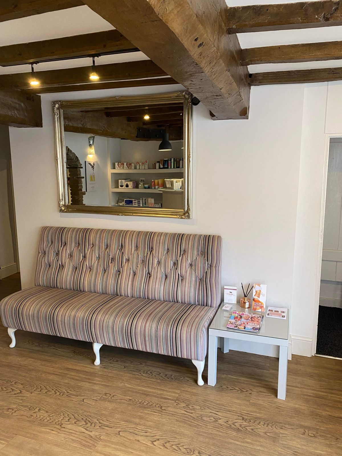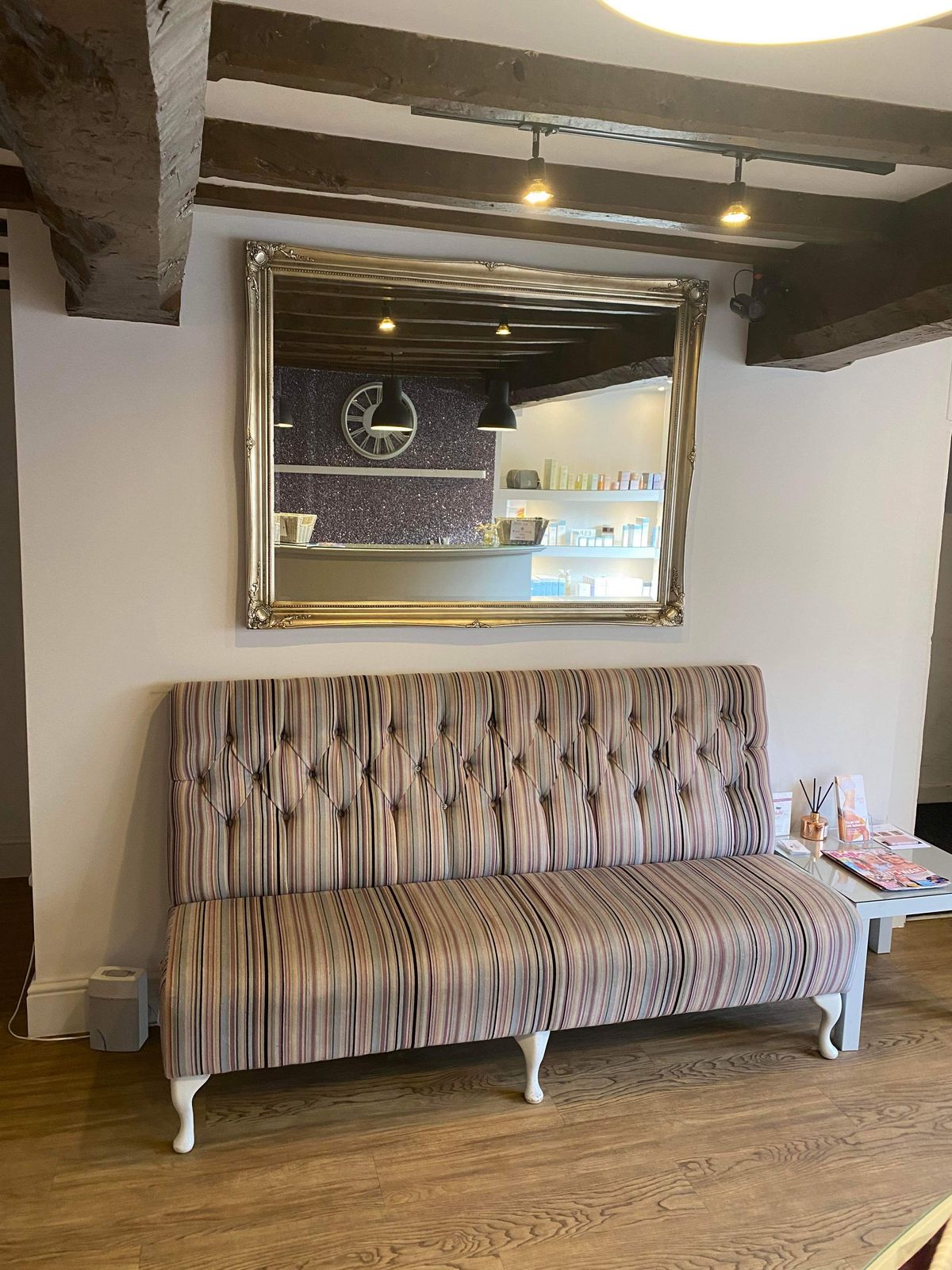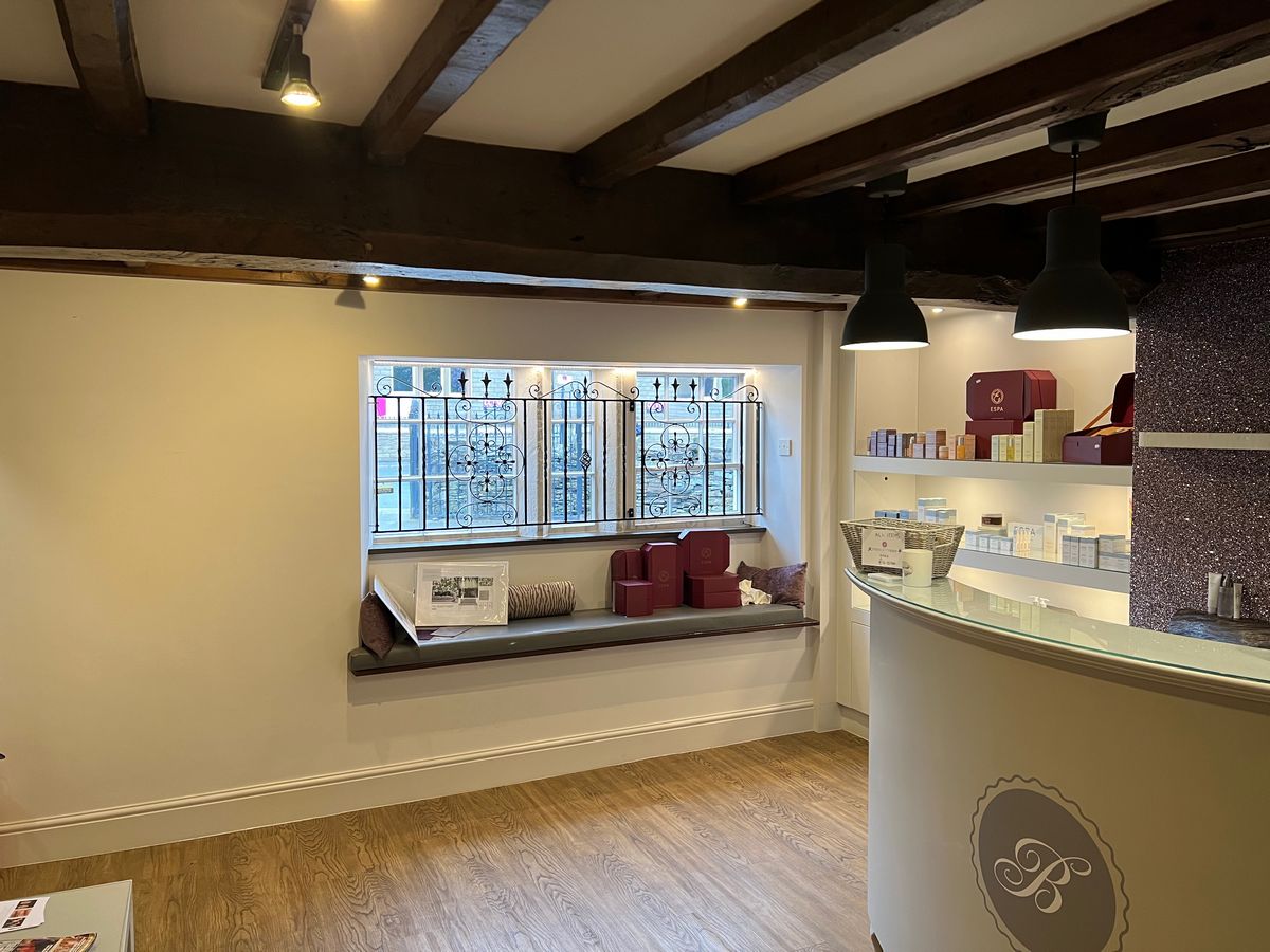 It was time for a revamp for the beauty salon reception. The building is a grade 2 listed property so it was important to ensure that whatever we did it respected and complimented the period and classic in feel whilst giving the space a fresh look. In the lower section to the reception area many beauticians didn’t want to work in the space as it felt a little tired and unloved. It was also hard to see from the outside if the salon was open as there are restrictions with signage. As it was a commercial business we needed to keep downtime to a minimum.