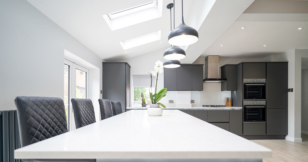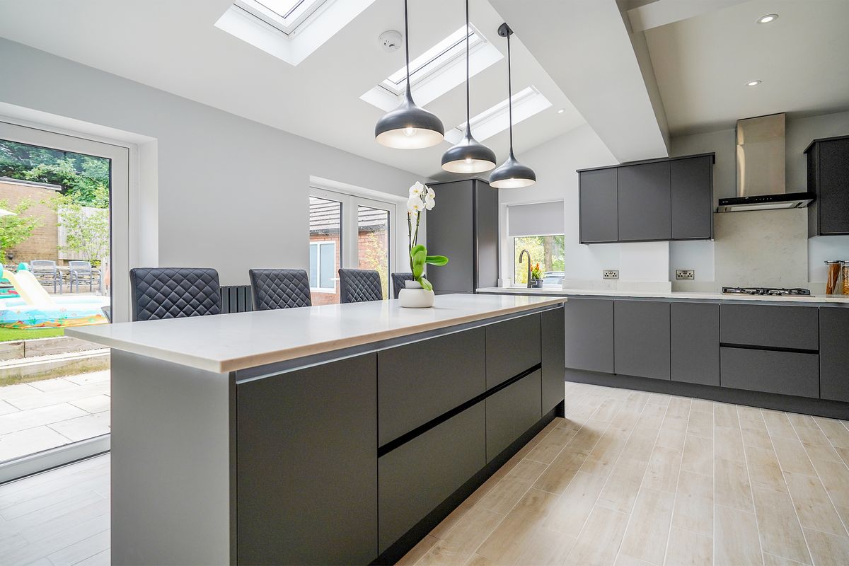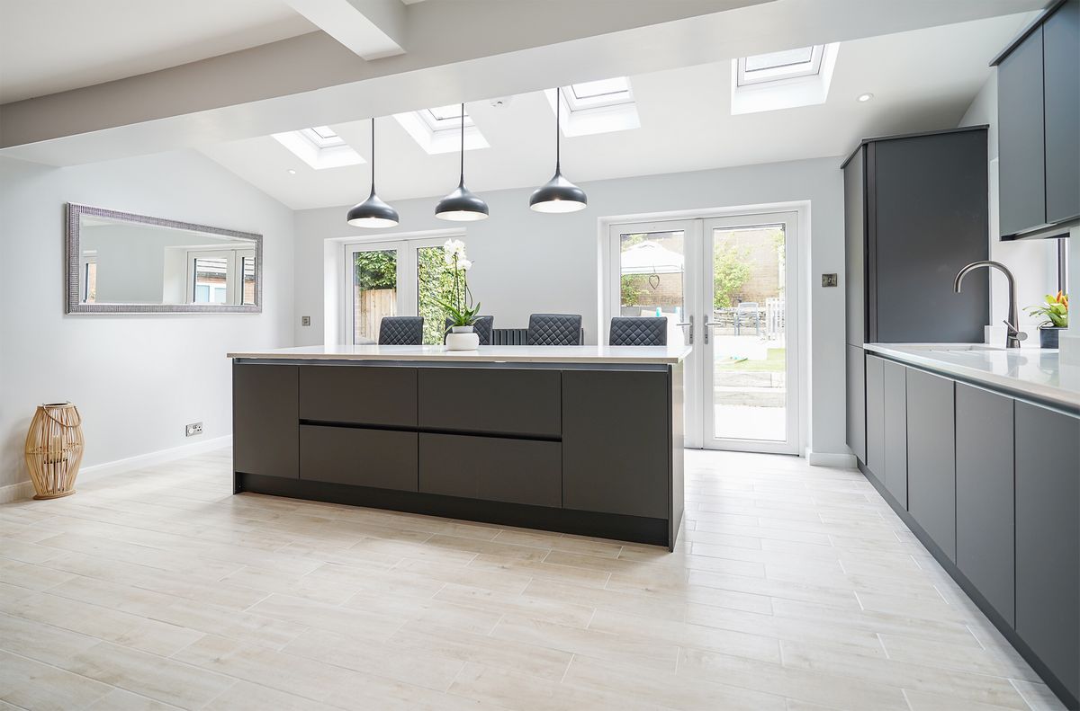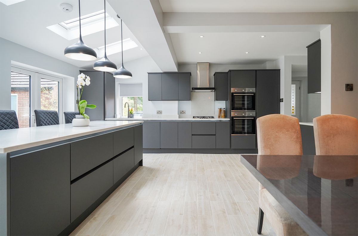 To create a family kitchen that looked modern, providing extra storage as my client loves to bake. Plus, having two young children needed an area for them to sit and also provide extra storage. Being able to sit down as a family was key to spend quality time together and enjoy mealtimes.